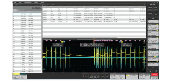 您可以单击示波器屏幕上的“结果表”按钮,以表格形式查看结果。结果表显示所有测量结果及其统计总量、来源和其他相关数据。您可以生成报告,有一个选项是保存进行这些测量时使用的波形数据。