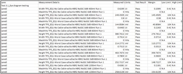 - 根据测试、通路、数据速率或测试通过/失败结果量身定制报告