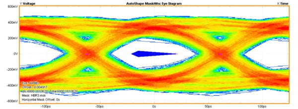 - 眼图高度(以 0mV 为中心对称)在 0.375 ~ 0.625UI 的任何通过位置确定。