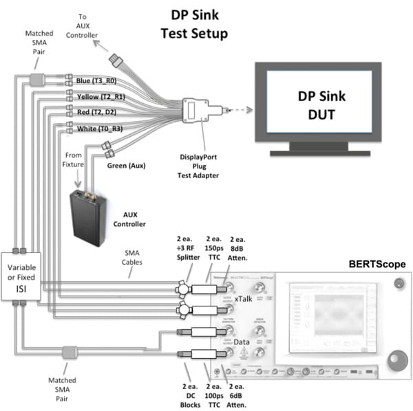 自动测试软件在测试过程中不需要用户参与。它可以在 BERTScope 和实时示波器之间自动校准,为 DisplayPort 1.2b PHY CTS 接收端一致性测试生成受压信号条件。