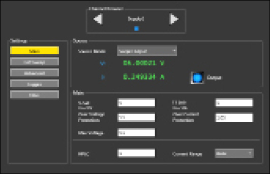 图3 通过主屏调整电压、电流、 电流量程、测量模式、保护等级 和其他功能。