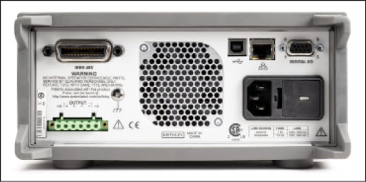 图11 2280S系列后面板包括后部输出连接器(用于远程检测输入)、数字 I/O以及3个接口(GPIB、USB和LAN)。