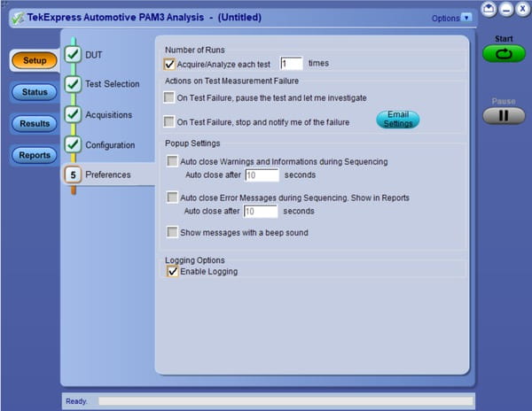多轮测试表征信号:PAM3 分析解决方案可以多次运行测量,使用不同条件表征 ECU。您还可以把 PAM3 自动化软件设置成失败时暂停,调试问题。来自不同测试轮次的所有波形都可以保存在一个文件夹中,后面再进行分析和调试。
