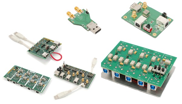 Fixtures provide connection points for USB 2.0 electrical testing.