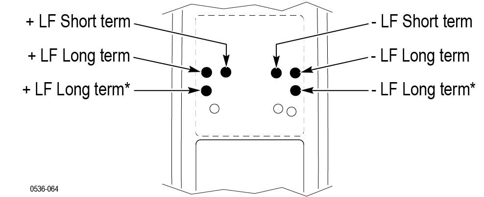 ![]() | Note:The TMDP0200 probe only has one long-term +LF adjustment and one long-term –LF adjustment. The other two probe models have two long-term +LF adjustments and two long-term –LF adjustments each. |