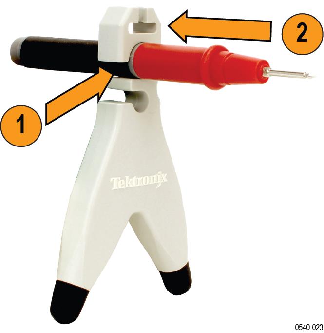 ![]() | WARNING:These procedures require you to remove a reusable label from the back of the probe. You must replace the label after you complete the probe adjustments. Failure to do so may subject the user to high voltages present in the probe during measurements. |