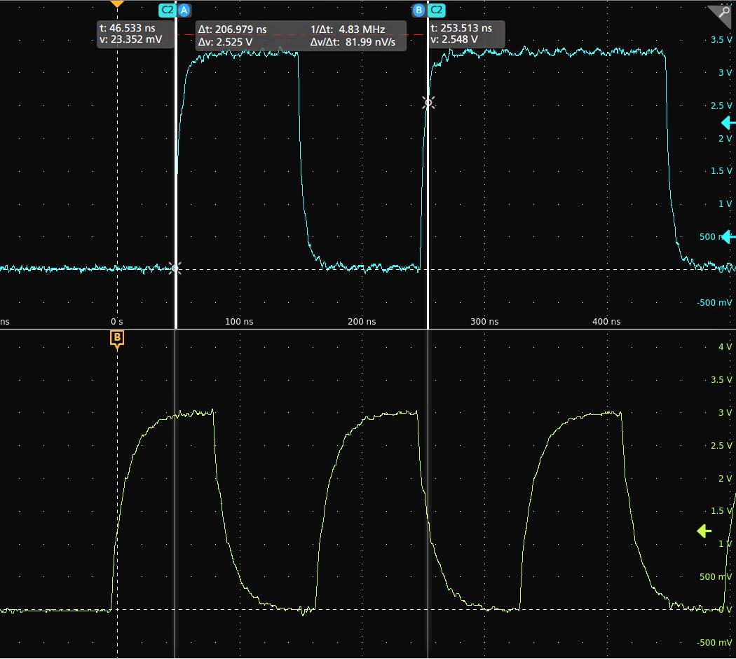 - 使用多功能旋钮 A 和 B 来移动光标,或者触摸和拖动光标。光标读数可显示光标位置以及测量差异。