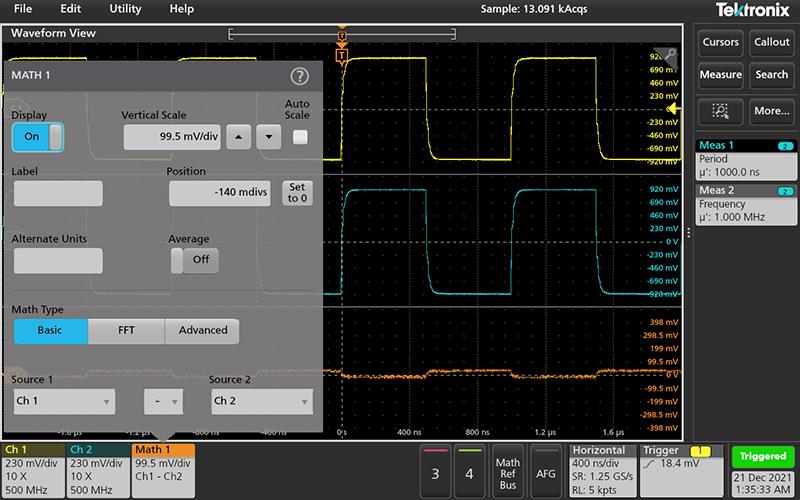 您可以搜索模拟和数字信号、数学波形和参考波形。您可以将多个搜索添加至不同波形或同一波形中。