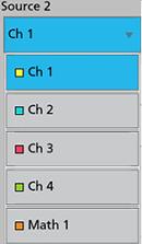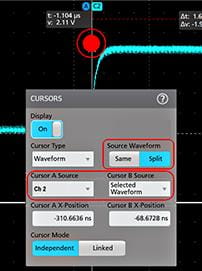 - 要拆分两个波形之间的光标,请单击源字段并选择拆分来选择每个光标的源。光标将被移动至特定波形。
