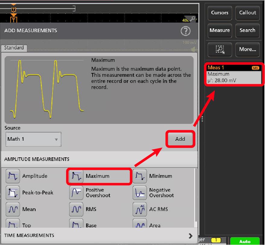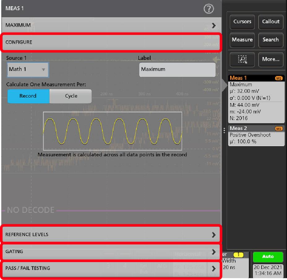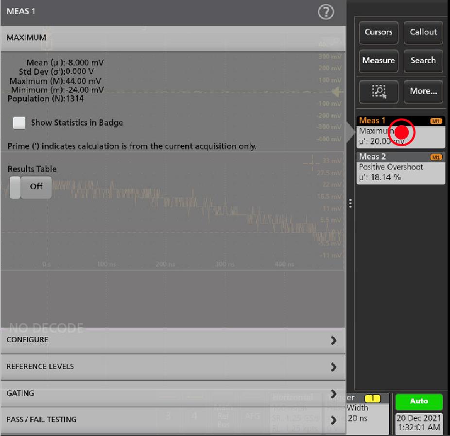 - 双击测量标记打开其 Measurement(测量)配置菜单。