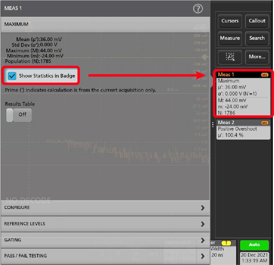 - 点击 Show Statistics in Badge(在标记中显示统计读数)向测量标记中添加统计读数。