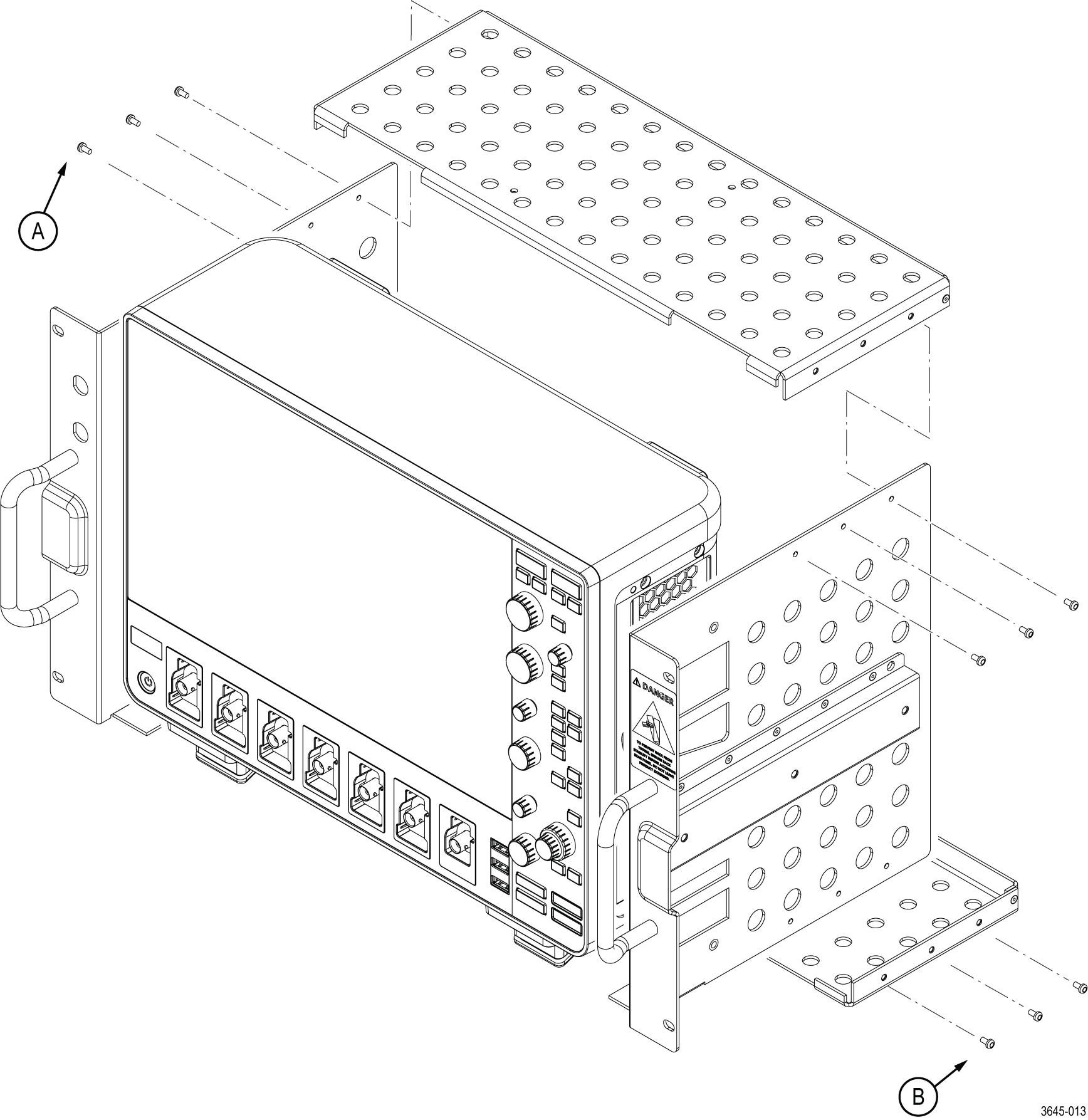 - Install the front filler plate on the rack above the instrument using standard rack hardware.