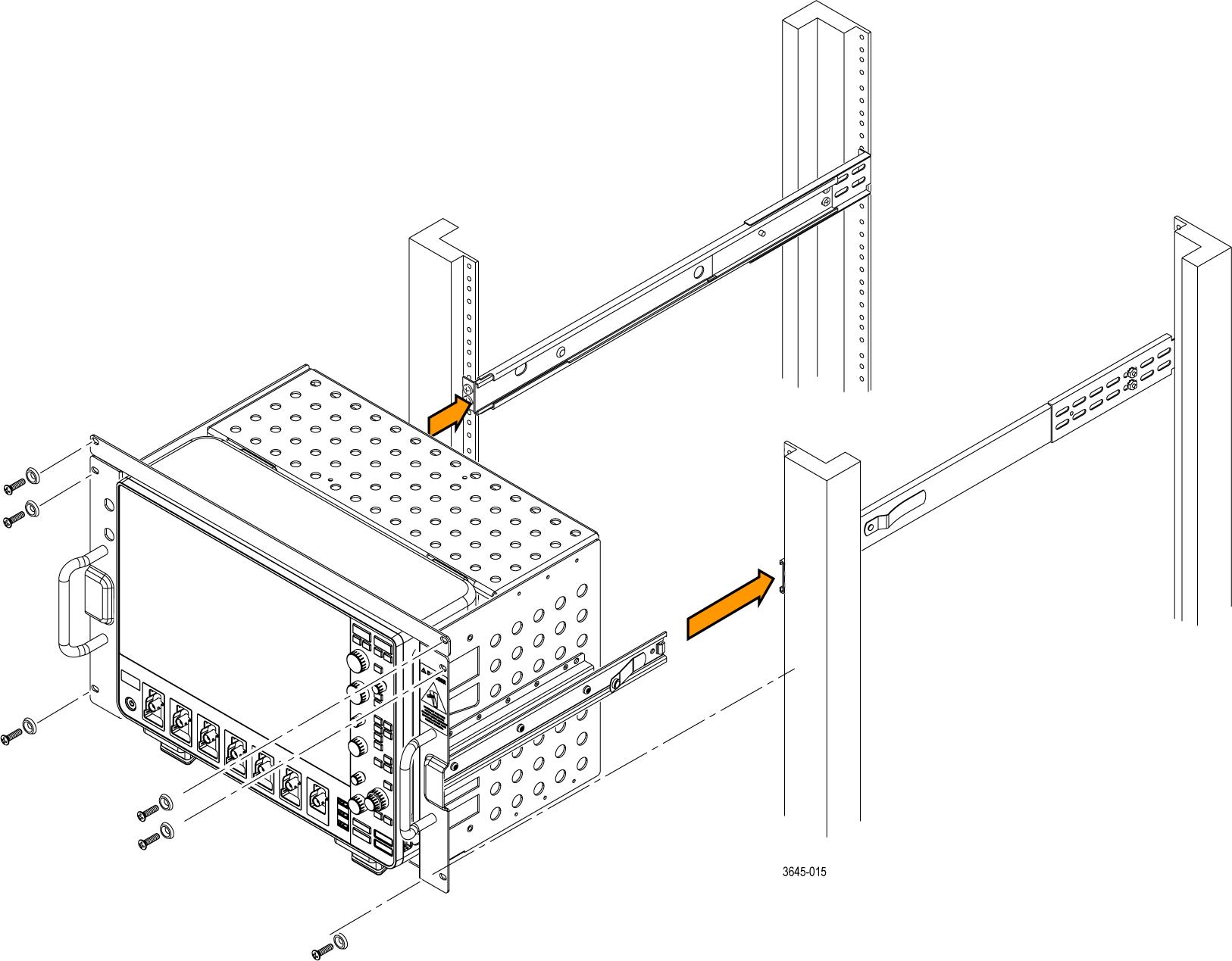- Install the instrument in your equipment rack by inserting the rack mounts into the slides.