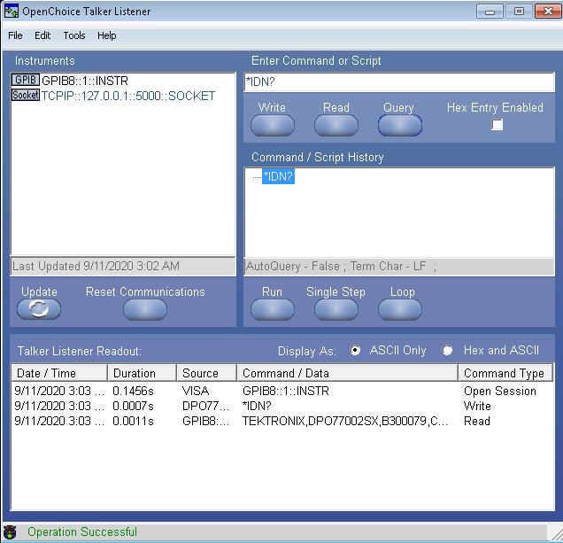 TEKEXP:LASTERROR?\n | It returns ERROR: INSTRUMENT_NOT_FOUND, when no instrument is found. |