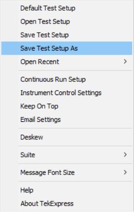 The first time you run a new, unsaved session, the session files are stored in the Untitled Session folder located at X:\TekExpress 400G-TXE. When you name and save the session, the files are placed in a folder with the name that you specify. A copy of the test files stay in the Untitled Session folder until you run a new test or until you close the application.