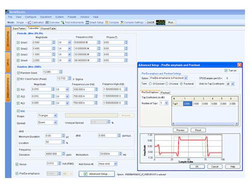 | 易用性 | SerialXpress 具有方便使用的用户界面,实现测试信号和各种损伤的组合,包括符号间干扰 (ISI)、占空比失真 (DCD)、时钟频谱扩展 (SSC)、预加重和噪声,从而缩短设置和测试时间。 |