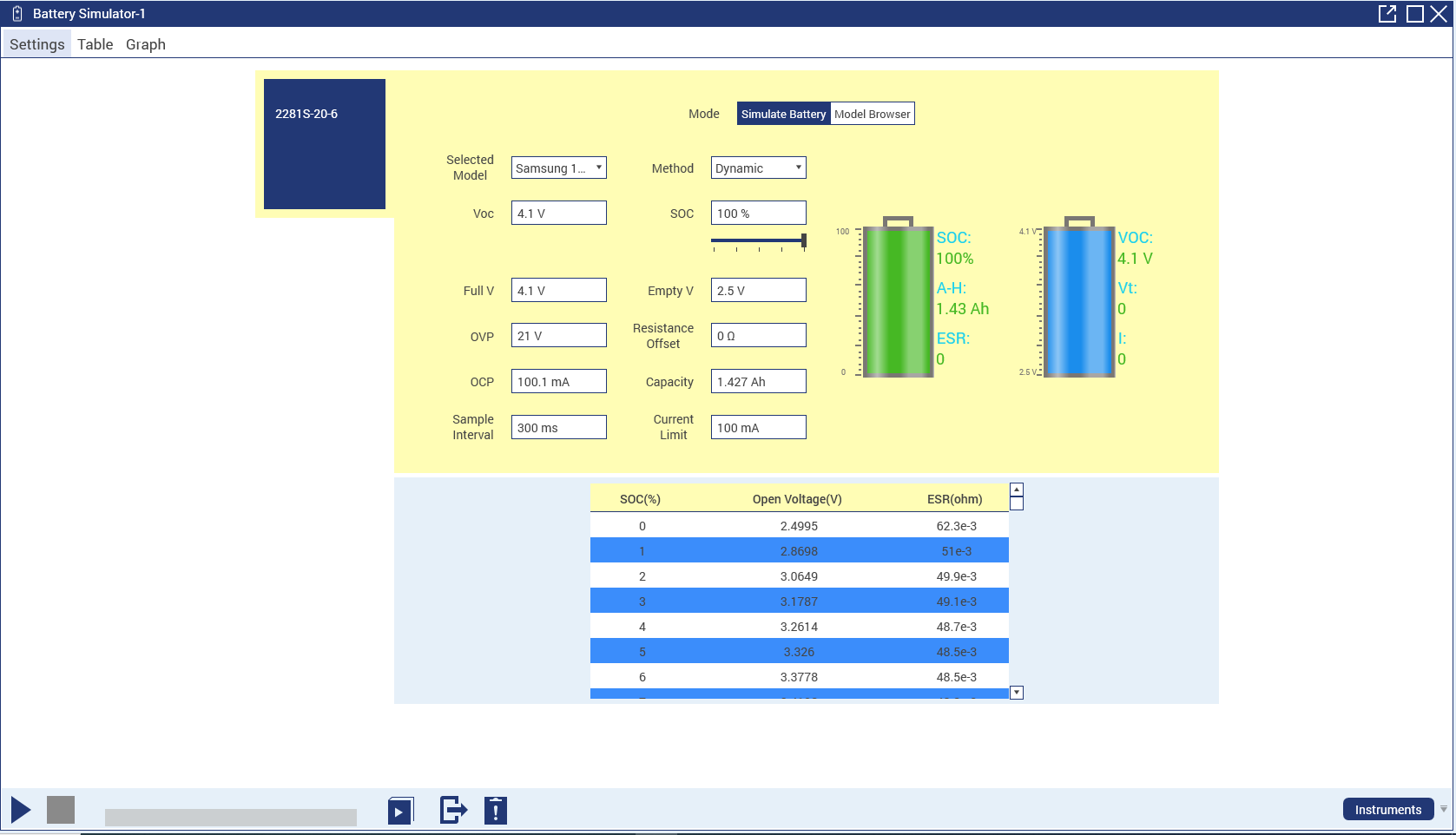 KickStart 电池模拟器应用程序为用户提供了创建、管理和模拟电池模型的简单方法,以及循环测试电池的能力。这款用于 KickStart 软件的可选专业应用程序可以搭配吉时利 2281S 电源/电池模拟器(用于模拟电池模型)、吉时利 2380 直流电子负载(用于生成电池模型),以及吉时利 2400 图形化系列和 2600A/B 系列 SMU(仅 A 通道)(用于生成电池模型、电池模拟和电池充电/放电循环测试)一起使用。