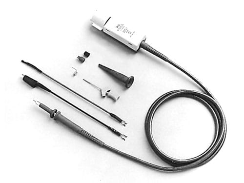 低压单端探头通常用于测量低于 12 V 以地参考的高速信号。这种低压探头是在高阻抗、高频电路元件上进行测量的优秀选择,这些测量中需要将探头负载影响降至最低。 用户应选择具有低输入电容指标 (~1 pF) 的探头以最大程度降低探头对电路的负载影响。 具有较低输入电容的探头能在更高频率上提供更高输入阻抗。