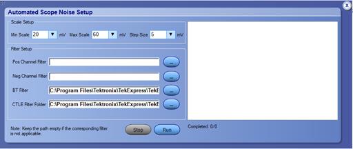 TekExpress PCIe provides an option to de-embed the signal path using filter files. You create the filter files. The filter files are .flt files composed of de-embed filter coefficients for a particular sampling rate. A filter file created for one sampling rate might not work for other sampling rates, so it is important to understand at what sampling rate the measurements are being performed.