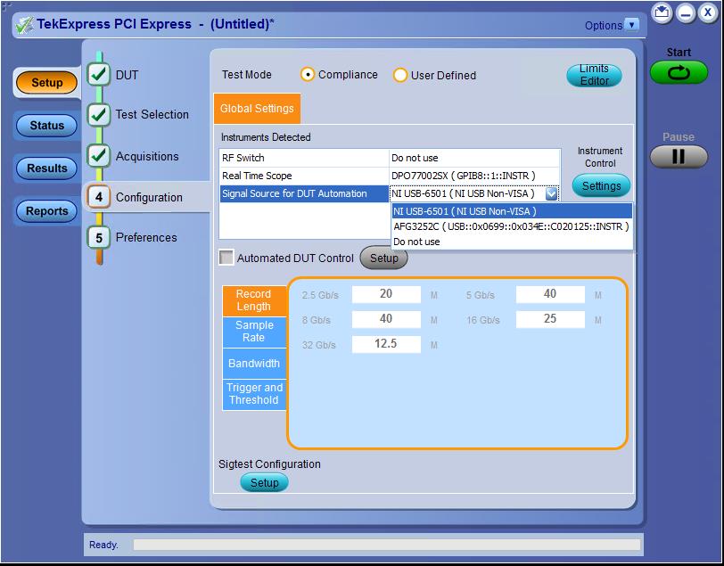 TekExpress PCI Express package contains setup files (*.TekX) which can be used at PCI-SIG workshop for compliance tests.