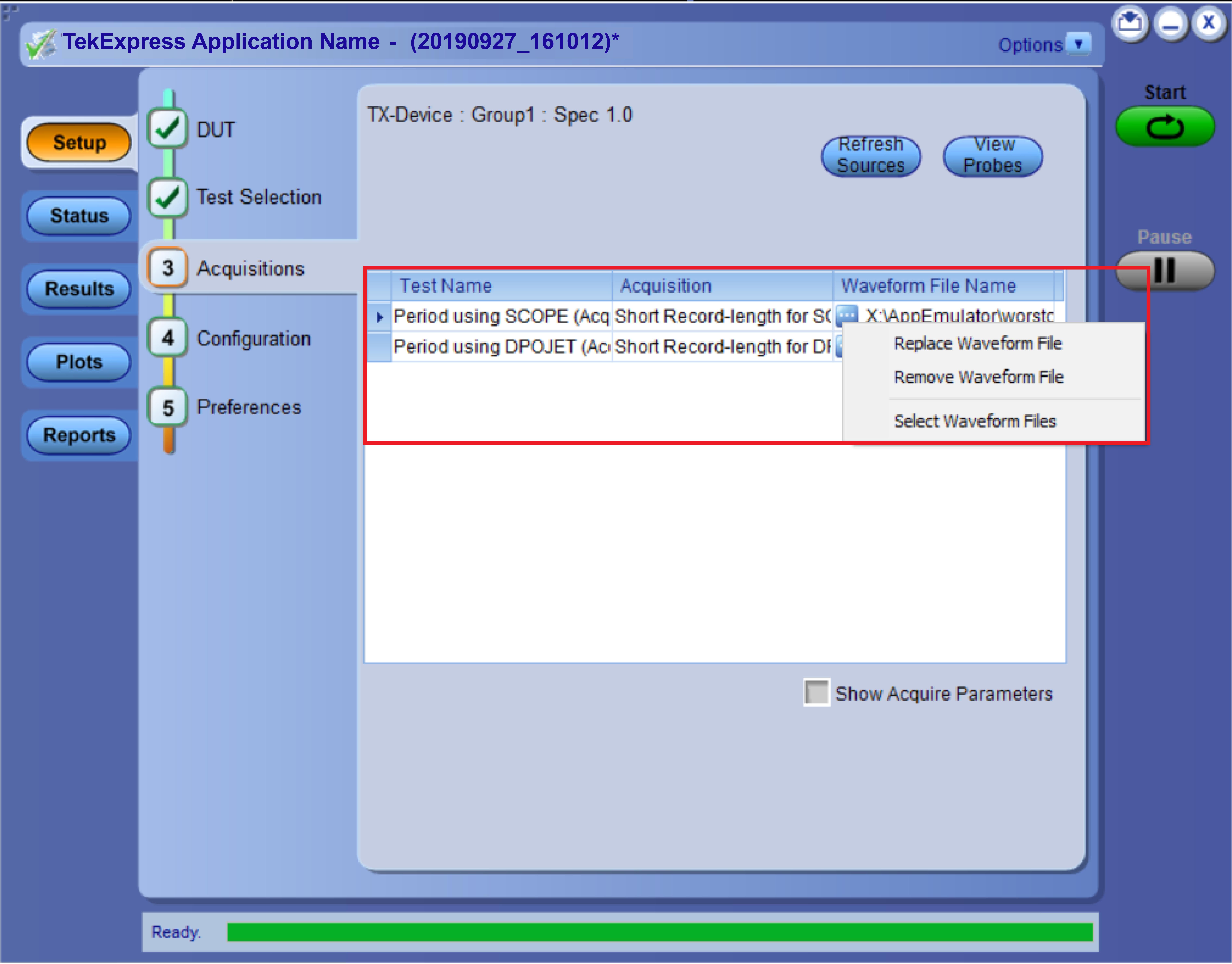 Note:You cannot edit the TekExpress Test Setup files as they are in Read Only mode.