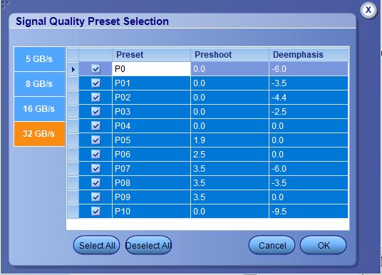 - Click Start and when the application prompts, power on the Gen4/Gen5 DUT. Ensure that the DUT transmits Gen4/Gen5 selected presets. Analysis will be done with SigTest.