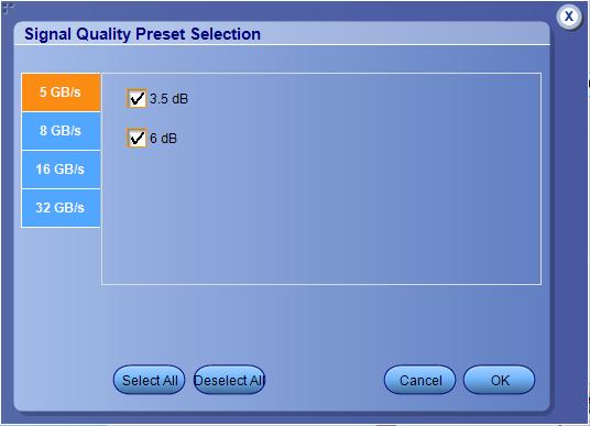 Capture data signals at sampling rate of 100Gsps/200Gsps with 12.5 M record length. Ensure the PCIE_TX_Toggle_Patterns_v10.0.0.2.exe is installed on AWG-70K series and the recommended probes and real time oscilloscopes are used.