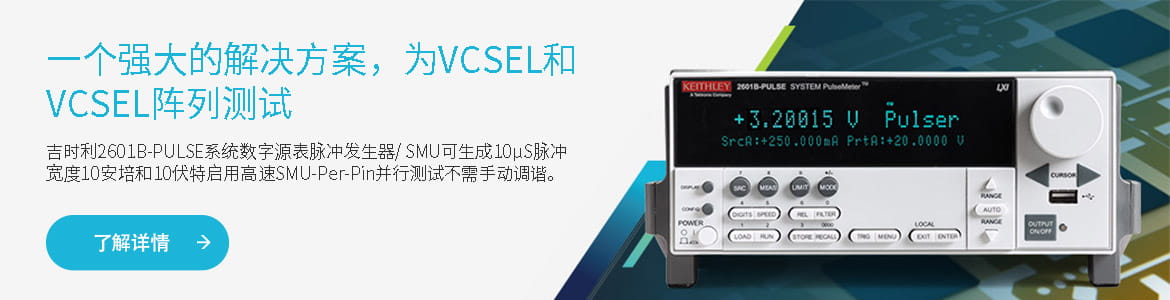 Keithley 源测量单元仪器可执行光强、正向电压、激光门限电流、量子效率、暗电流、“扭结”或扭结测试的存在、斜率效率、热敏电阻、温度、电容以及 L-I-V 脉冲测试等电测试。