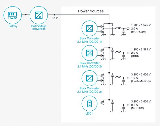 尽管许多 FPGA 和 SoC 的主电源电压已经大幅下降,但这些不是要考虑的 电源。片上 I/O 电源的覆盖范围比主逻辑电源的覆盖范围大得多。为 POL 稳压器或电压调节器模块 (VRM) 供电的整体 电源的电压通常要高得多。